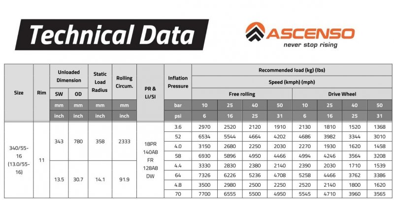 | Типоразмер | 13.0/55-16, 340/55-16 |