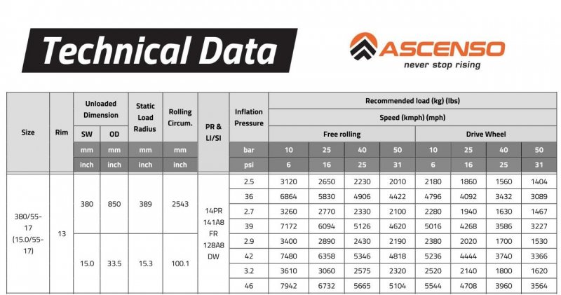 | Типоразмер | 15.0/55-17, 380/55-17 |