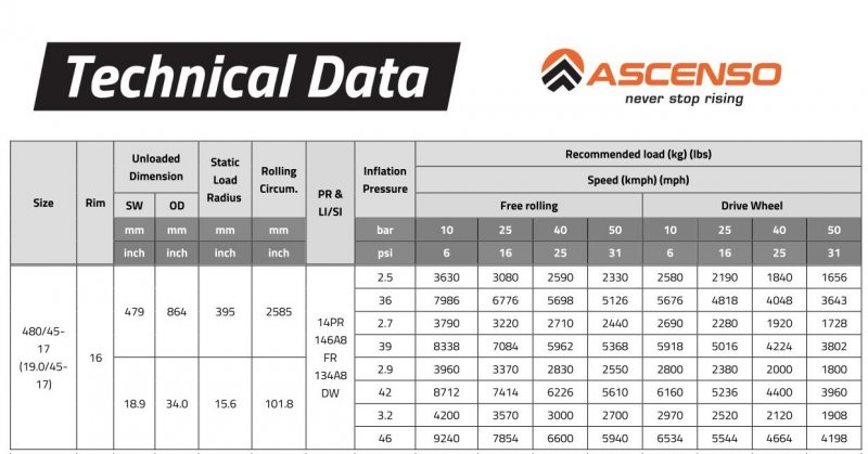 | Типоразмер | 19.0/45-17, 480/45-17 |