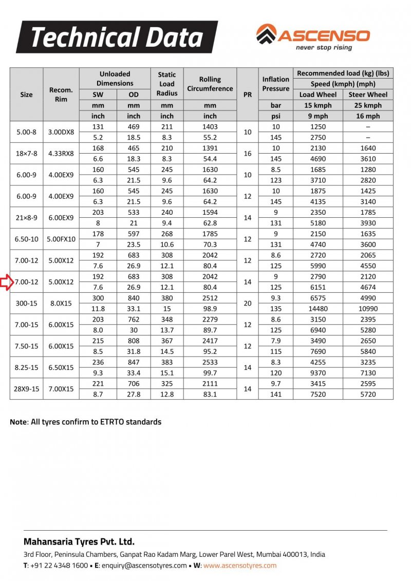 | Типоразмер | 7.00-12 |
